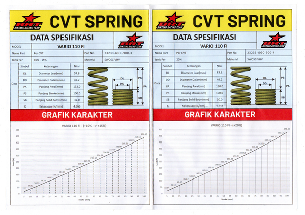 Lò xo nồi CVT 20% Vario 110 Fi/Airblade125/ Vario125/Click125 2015-2023, PCX 2013 - 2022 , SH Việt K01 2013-2019, Vision 2013-2023, ShMode125/Lead125 4valve (130mm).